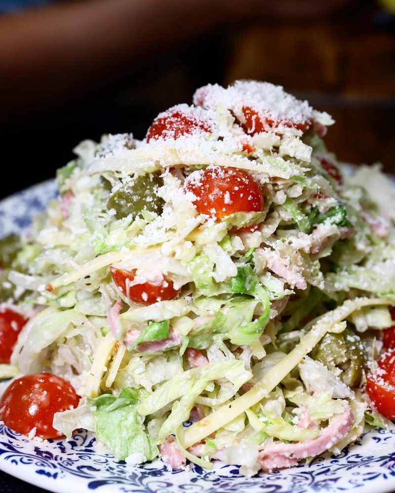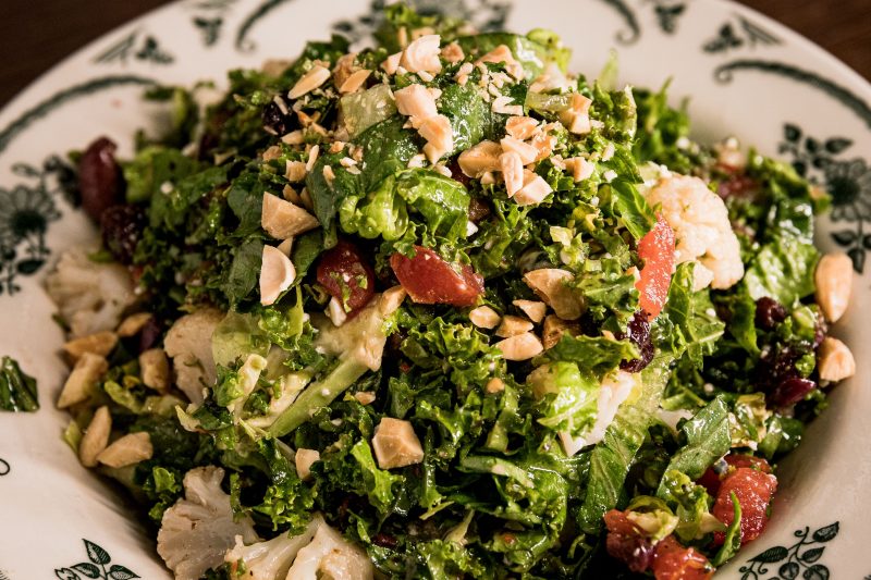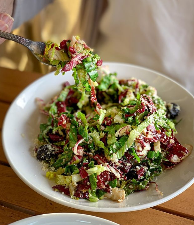 Order: The anything but ordinary Chopped Salad – romaine, radicchio, parmesan, hazelnuts, cherries, candied garlic vinaigrette; $9.