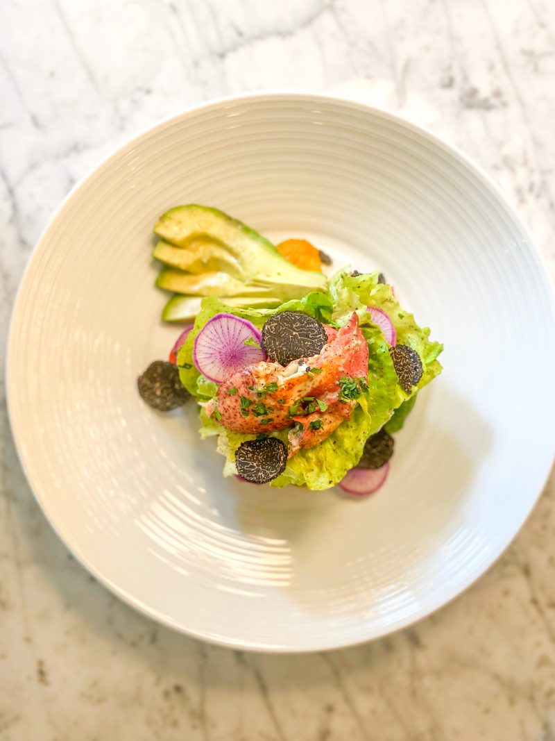 Order: Salade Royale Helene with bib lettuce, lobster, avocado, asparagus, tomato, and truffle vinaigrette.