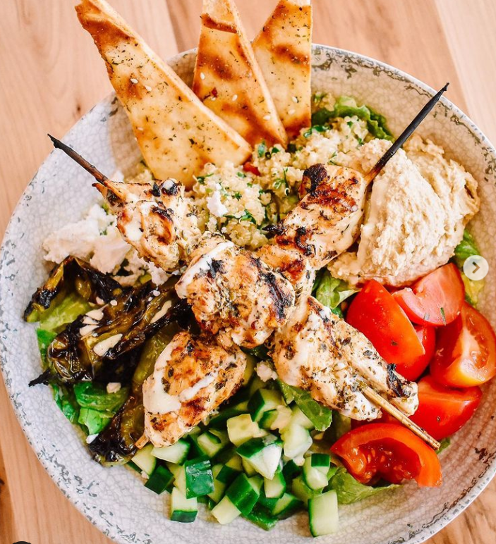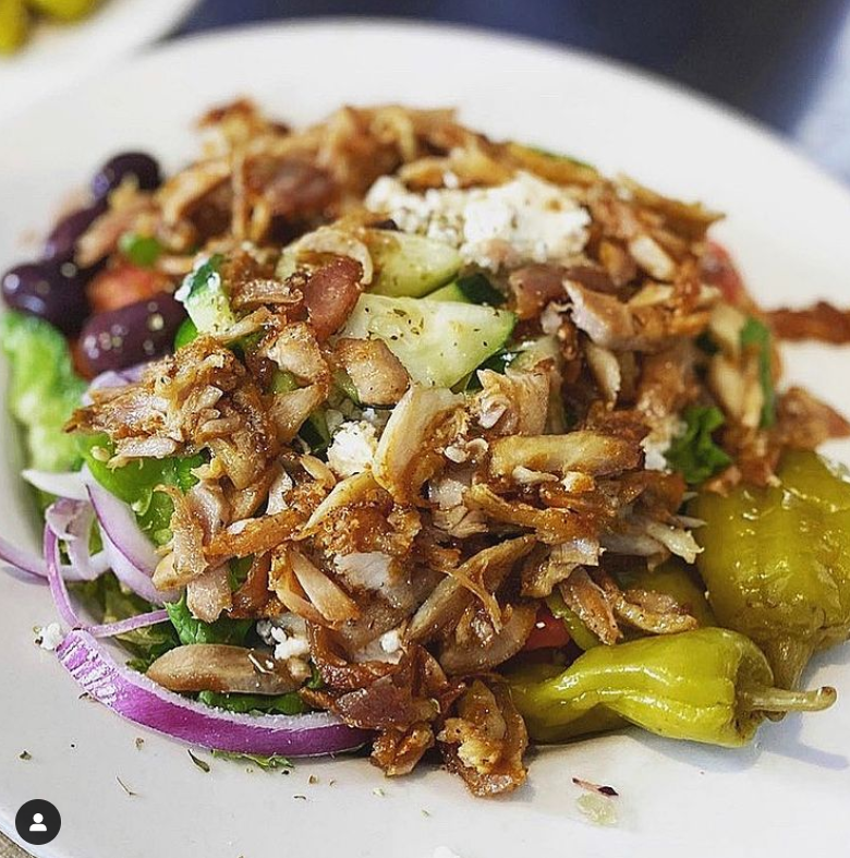 Order: Their specialty Mad Greek Salad which has lettuce, tomato, onion, cucumber, feta, green pepper, olives, pepperoncini with your choice of dressing and a side of pita bread; $10. Pro tip: add Grecian Chicken for some protein, you’ll thank us later.