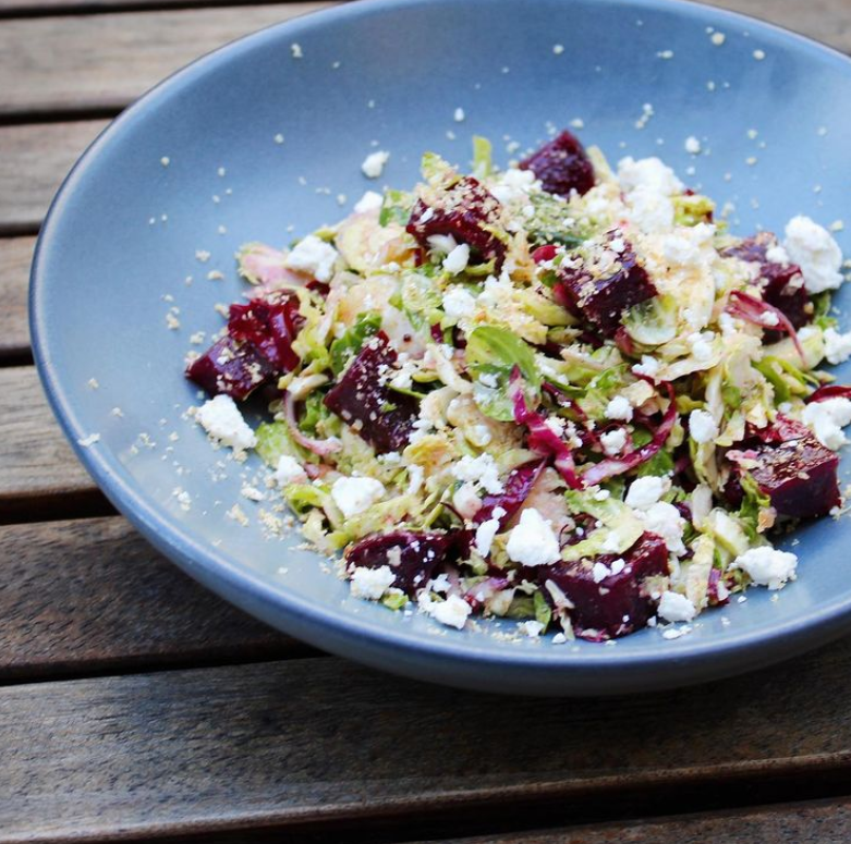 Order: Green + Grain – Greens, quinoa, shaved Brussels, beets, white beans & avocado with your choice of dressing $13