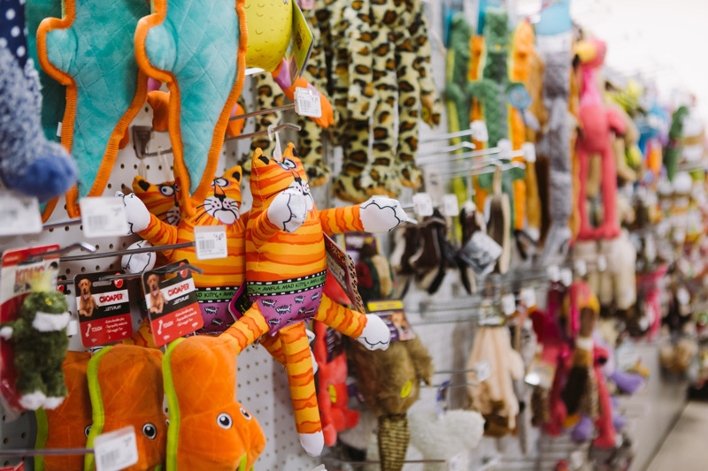 As for pet accessories, you’ll find an aisle for bowls, leashes, collars, harnesses, beds, litter supplies, scratchers and more.