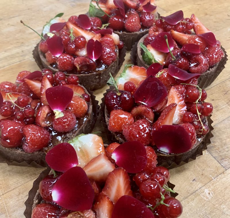 - Chocolate Redberry Tarts – Chocolate almond crust , chocolate ganache and topped with assorted red berries- Vegan + Gluten Free