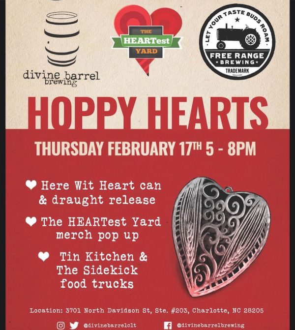 Join Divine Barrel Brewing and Free Range Brewing to support The HEARTest Yard in their quest to keep all of our hearts healthy. There will be a new beer release, pop-up merch sale and food from Tin Kitchen and The Sidekick.
