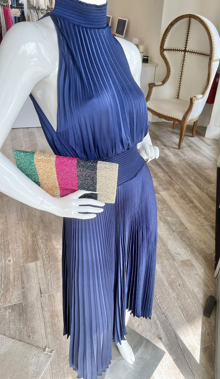 NEIMAN MARCUS HALSTON SIENA PLEATED VELVET DRESS  ON SALE ONLINE BUY HERE $267.00