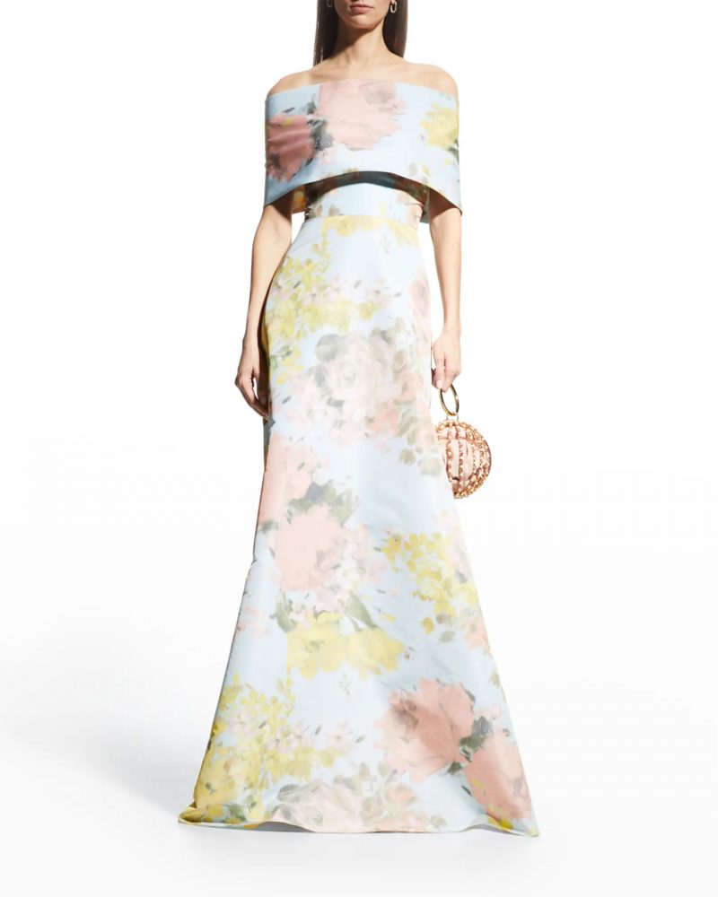 Neiman Marcus LELA ROSE Floral Strapless Gown w/ Removable Off-The-Shoulder Shrug BUY ONLINE HERE $3690