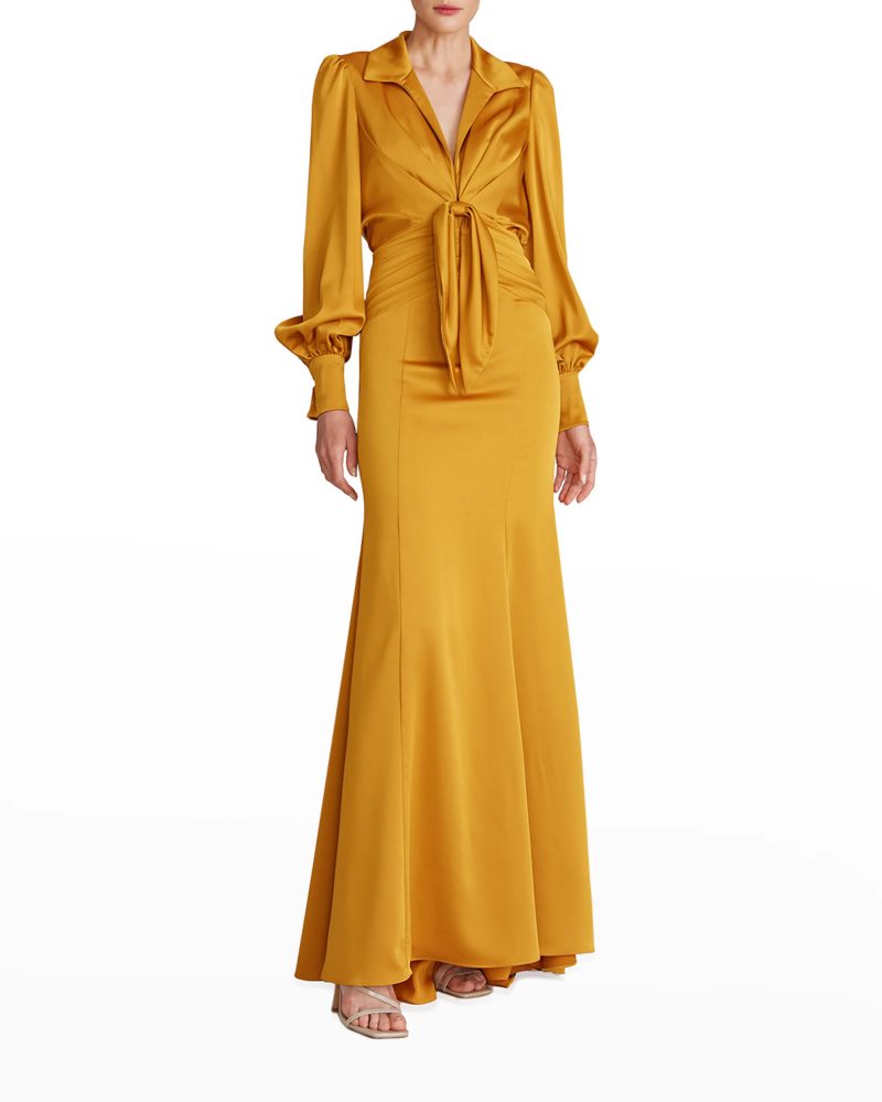 Neiman Marcus SACHIN & BABI Zoe Belted Long-Sleeve Pleated Gown BUY ONLINE HERE $895