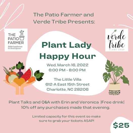 Join The Patio Farmer and Verde Tribe Plant Shop for a plant-obsessed happy hour at The Little Villa. Learn practical plant-care tips and ask questions of experts Farmer Erin and Veronica of Verde Tribe. Registration is required.