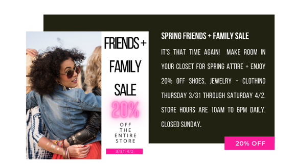Friends & Family Sale at SLOAN, 20% off the whole store