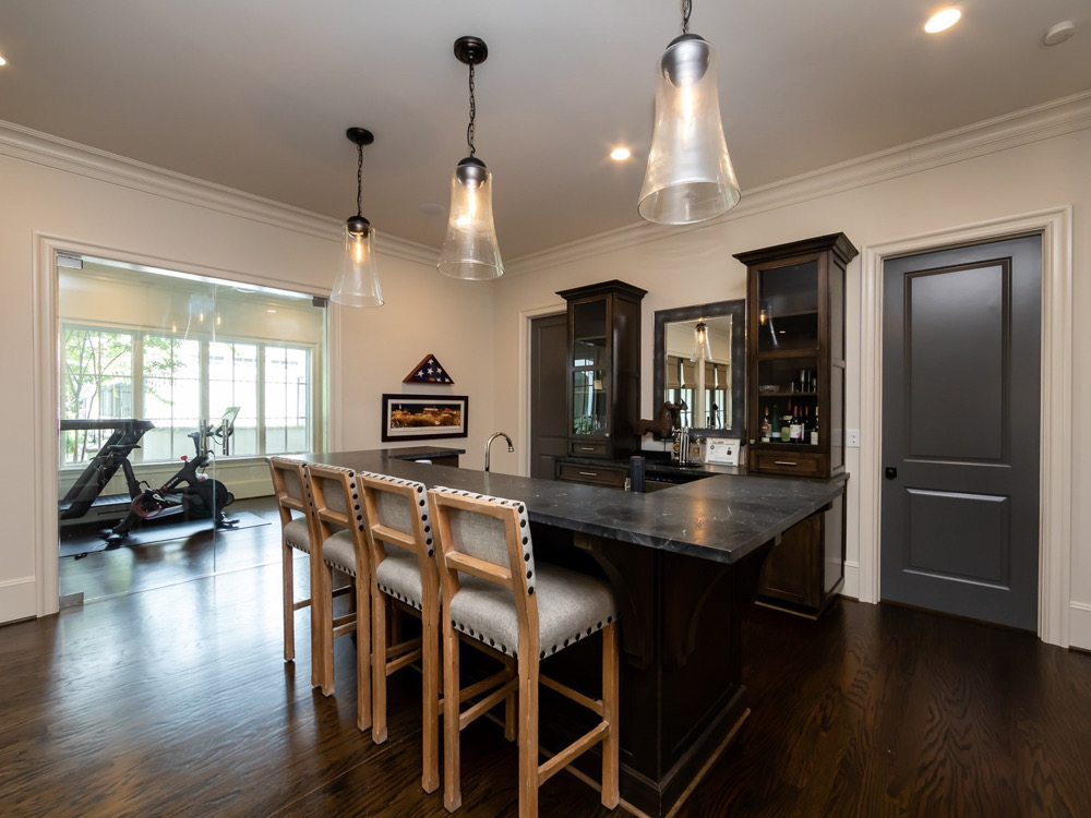 10 ft ceilings, gorgeous finishes and custom millwork throughout are just a few of the impressive details.