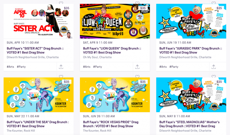 Sometimes Sundays are just easier. Enjoy one of Buff Faye’s drag brunches at your choice of locations around town ~ but you still should Uber, even though it’s daytime.