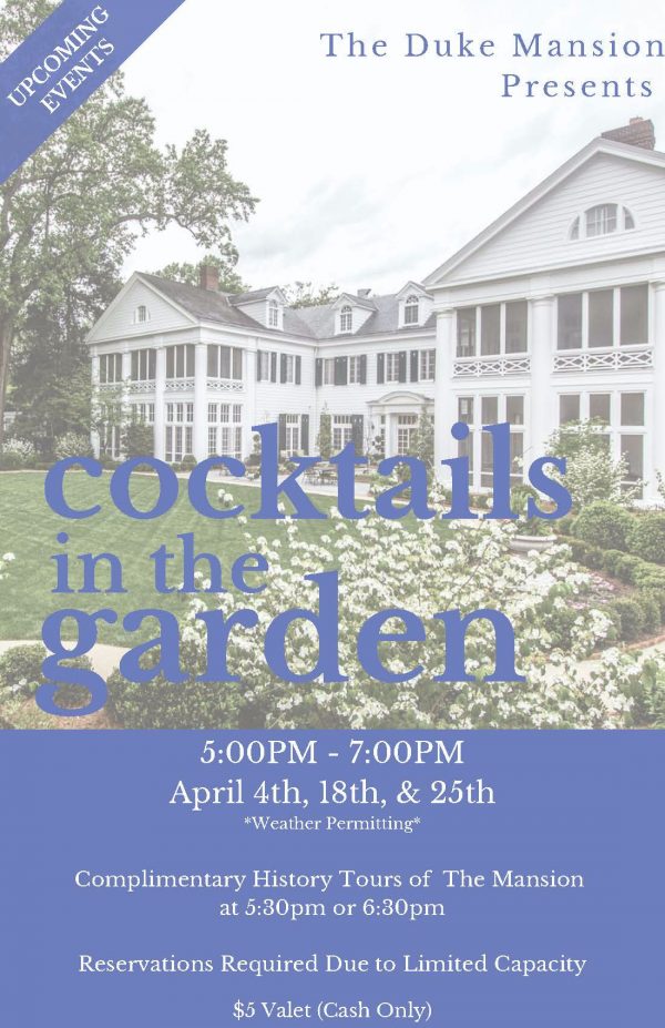 Meet Up for Cocktails in the Garden at The Duke Mansion ~ RESERVE HERE.
