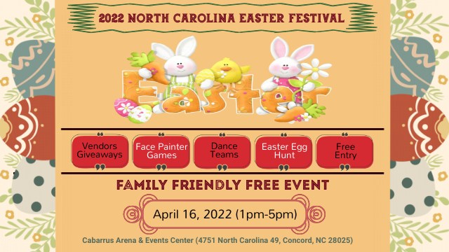 The 2022 North Carolina Easter Festival is full of festivities such as face painting, games, dance performances, crafts, vendors, an Easter Egg Hunt and FREE Easter Bunny pictures. Free Tickets & Vendor Info HERE