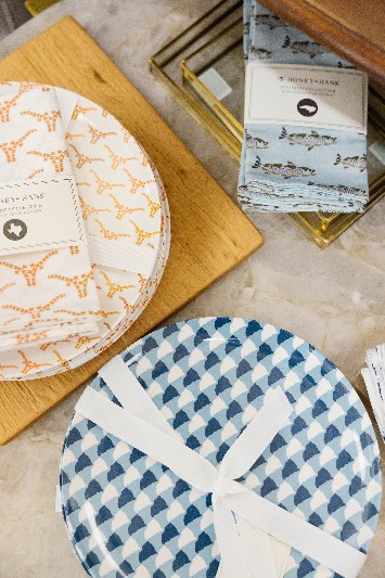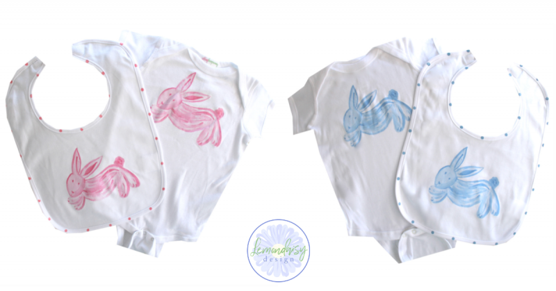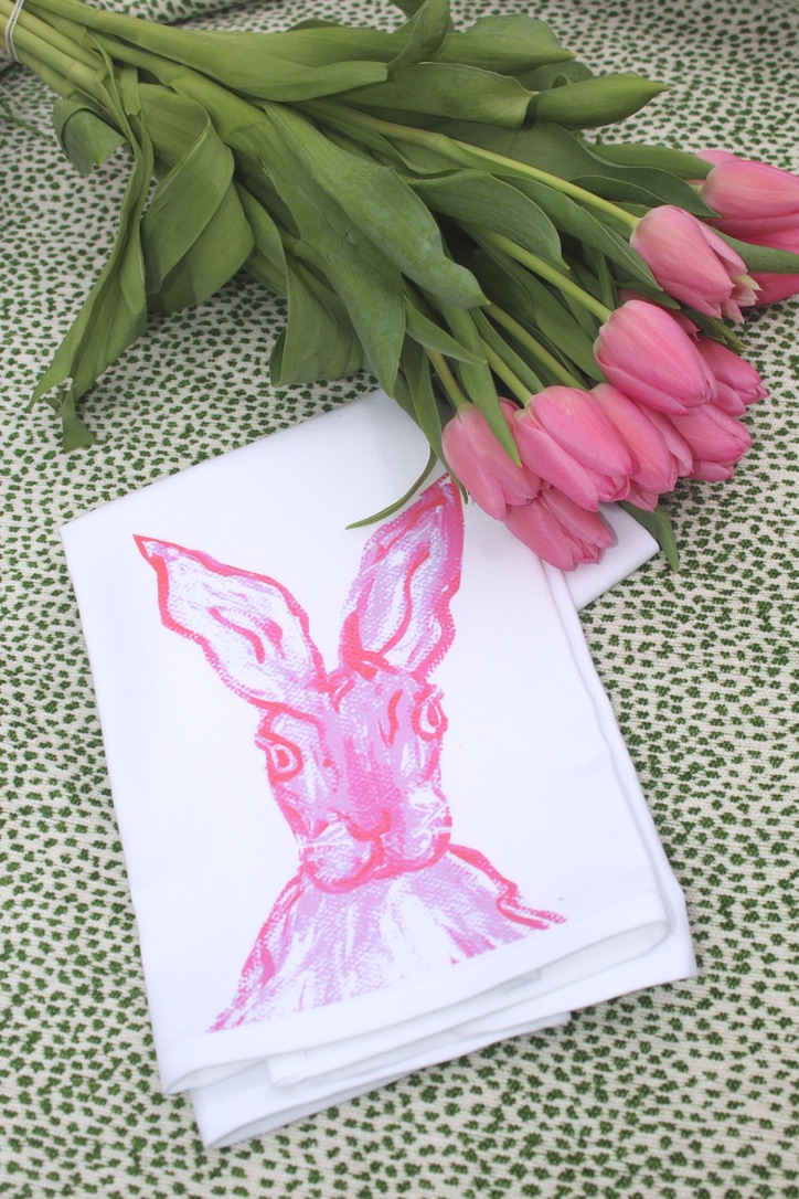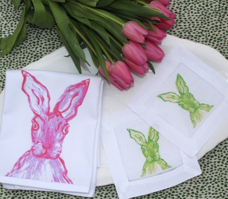Local artist Leslie Flanagan and her Lemondaisy Design never fail to brighten each holiday up with affordable gifts, linens, baby clothes and more. We just adore these bunnies. Cocktail napkins, tea towels, guest towels, bibs and rompers and more, all under $30.