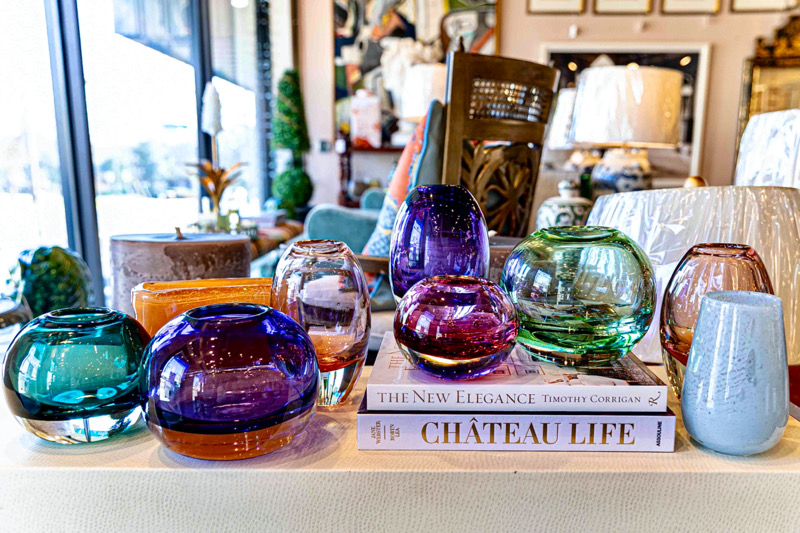Color is the game at designer Mary T. Miller’s home furnishing, decor, and design ABODE boutique on East Blvd. Just walking in makes us happy.