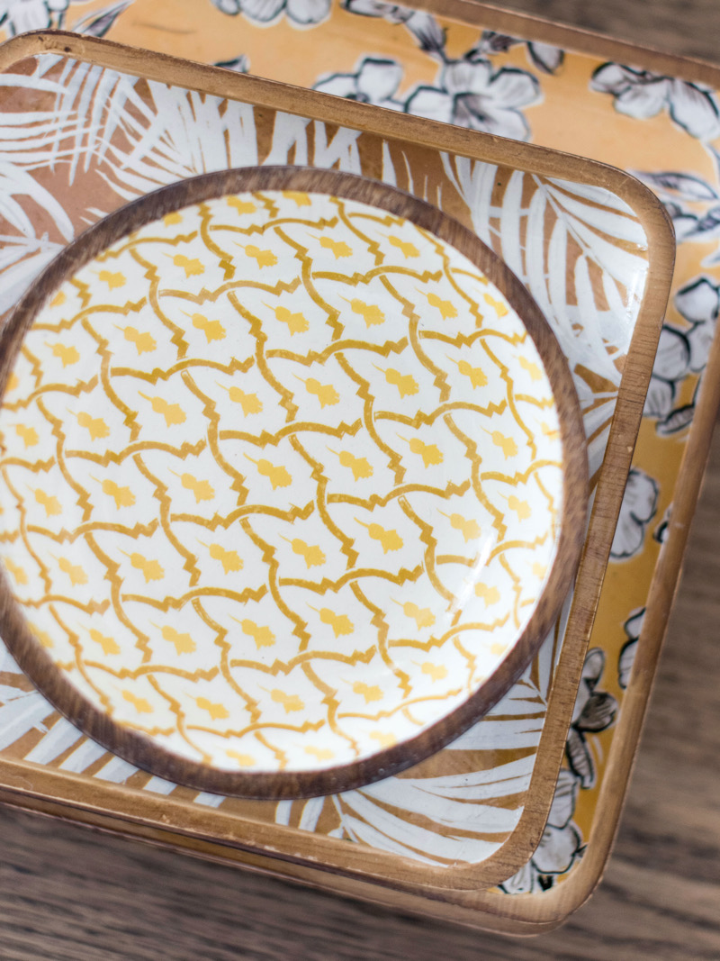 Enameled Acacia Wood Trays:  $15-$28