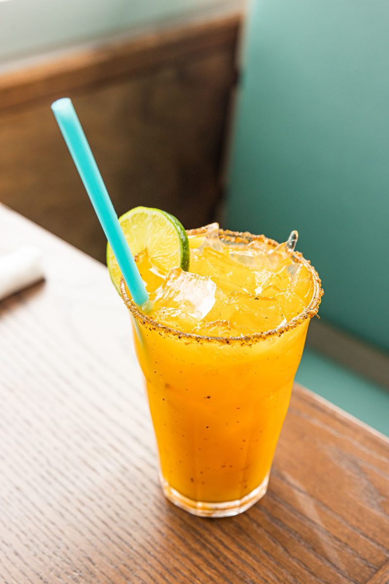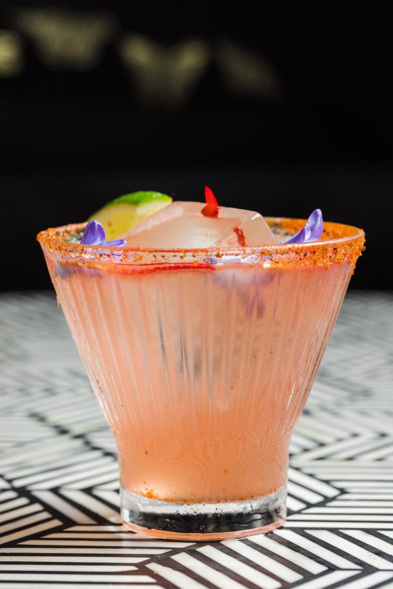 A customer favorite that is not new to the menu at Mariposa but keeps smiling faces coming back and has a perfect flavor profile for spring and summer is the Fuego Roca Tierra — with mezcal, watermelon shrub, housemade mango habanero syrup, fresh watermelon, and a Tajin rim. Yummy.
