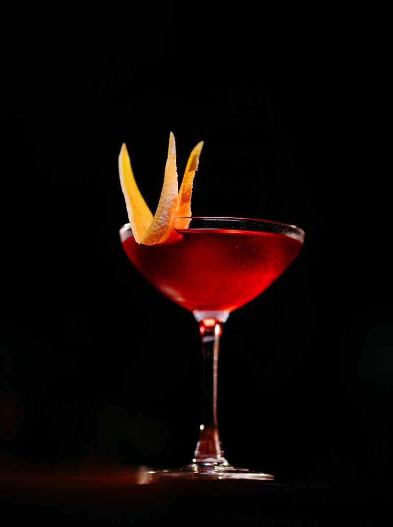 Another spring favorite is the Red Light District with hibiscus flower infused-Cazadores Reposado Tequila, Vermouth Blanc, elderflower, pomegranate, plum bitters and chipotle pepper tincture with a grapefruit peel garnish.