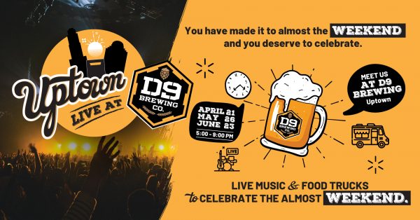 Head to D9 Brewing Uptown this spring for their new Uptown Live series. Celebrate the upcoming weekend with live music, food trucks and pop-up shops – plus one of your favorite local brews.