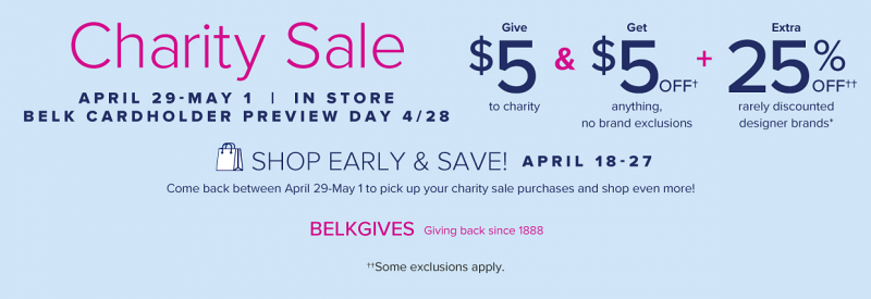 Belk’s Spring Charity Sale will run from Friday, April 29th through Sunday, May 1st. The special fundraising event gives customers access to exclusive discounts, while also giving back to local nonprofit organizations