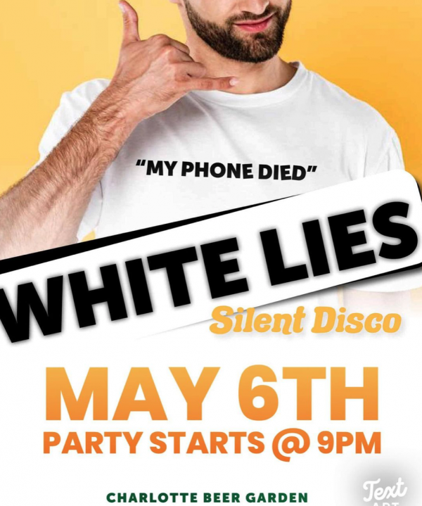 Charlotte Beer Garden is taking a Silent Disco and remixing it with a White Lies Theme. White lies theme you ask? It’s simple. Find a shirt and write a white lie on it. This is a +21 up party ~ Headphones will be $10 and require an ID to participate