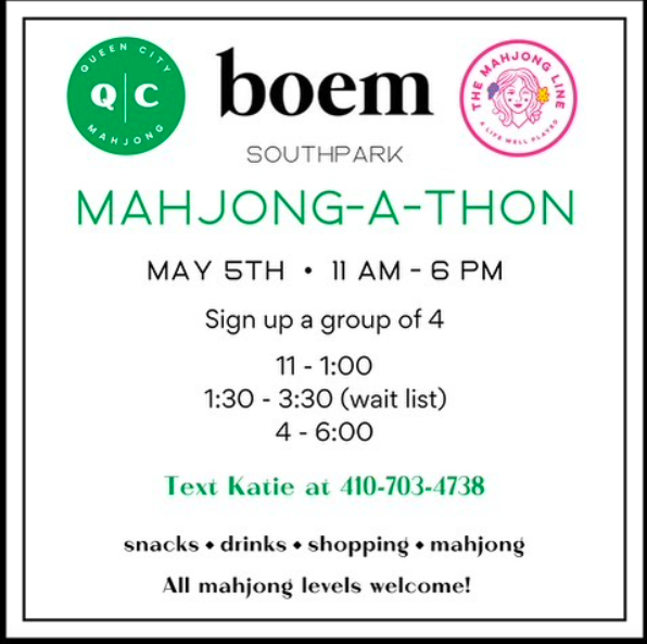 Right up there with Pickleball, Mahjong has taken over the scoop girls’ calendars these days. Text Katie to reserve a time (looks like the happy hours are already booked tho). Curious and want to learn? Stop by for an introduction. A fun day of shopping and playing! 💥 @shopboem @queencitymahjong