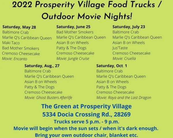 Kick-off Outdoor Movie Night at The Green at Prosperity Village with ‘Encanto’ and an assortment of local food trucks to feed the family during the show. Check the schedule for a list of participating trucks as well as the movie schedule for the summer.