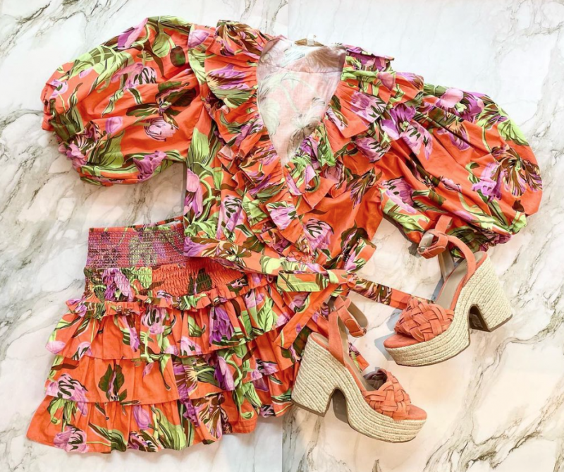 In case you were wondering if any new style trend would ever make inroads into Charlotte’s years-long fashion obsession with the floor-length floral frock, it looks a fun twist is happening ~ the two piece matching set. Both fresh and practical (wear together / wear apart), we love seeing these matchy outfits around town, and pulled some current faves from the QC boutiques.