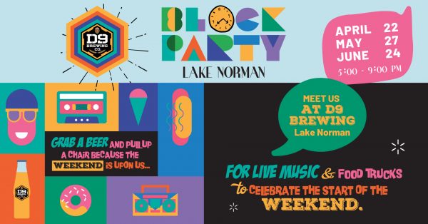 Ring in the weekend with D9 Brewing Lake Norman as they host the final Block Party celebration of the season with an evening full of local beer, food trucks and pop-up shops.