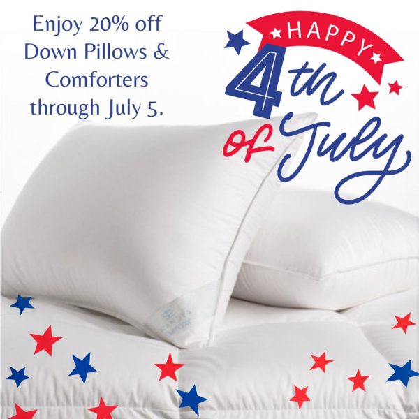 Also NOTE: Bedside Manor will be closed on Monday July 4 and they are having a SCANDIA down sale June 30-July 5 with 20% off all Scandia Down pillows and comforters.