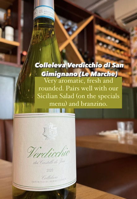 Bibi Graetz Casamatta Bianco: Gorgeous artwork from the winemaker himself adorns this Vermentino dominant white blend. Lush, mouthwatering acidity and flavors of exotic fruits will keep you coming back to the glass!
