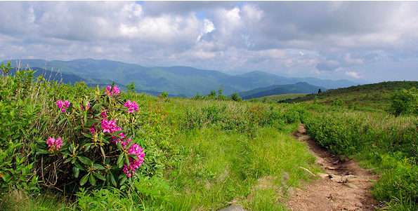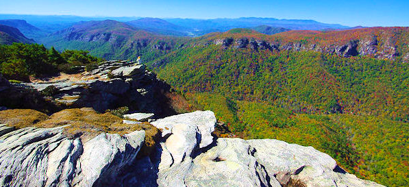 The northern end is at the Daniel Boone Boy Scout Camp near Cold Mountain, while the trail’s southern end is near the Davidson River Campground, near Brevard in Transylvania County. At 30 miles roundtrip, this hike is not for the faint of heart and should be broken up over a few days. The Art Loeb Trail crosses four 6,000-foot mountains, including Black Balsam Knob (above) near the Blue Ridge Parkway. Camping is available in the pine forest about a mile or two beyond Flower Knob- great for hanging hammocks from tree to tree. Rhodenderon and azaleas cover this area in the May & June. Shining Rock is also on this trail beyond Black Balsam and has a wilderness area as well as an overlook and rock outcropping. Topped with dazzling quartz formations that give the rock it’s name, this is a unique hiking destination and a great option for a day hike.