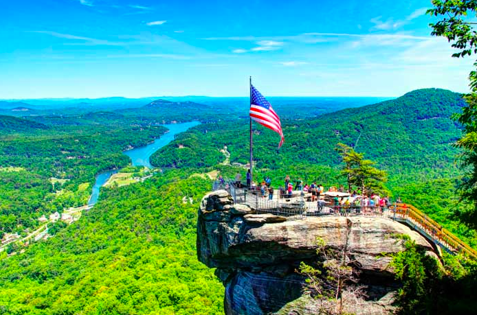Super popular with Charlotteans and pretty close by, Chimney Rock can get a bit crowded when the weather is fine. It can also be touristy ~ after all Chimney Park has it all covered with hiking trails, rare plants, native wildlife, and one of North Carolina’s highest waterfalls ~ the famous Hickory Nut Falls from the film The Last of the Mohicans. A quick .75 mile hike will bring you to its base with the top 404 feet above you. Waterflow depends on the recent rainfall and can range from a trickle to roaring. Take advantage of the other trails in the park and enjoy the view of Lake Lure from the top of Chimney Rock while you’re here.