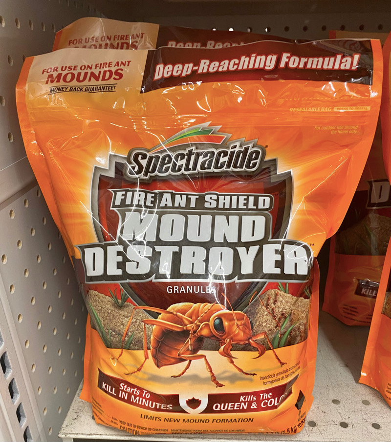 Speaking of bities, fire ants are something we often see in our area. If you’ve ever been in a tussle with this tiny but mighty stinging species you know they mean serious business. They build large dome-shaped mounds, and summertime is their jam… they invite approximately 200,000 of their closest friends to the party.
