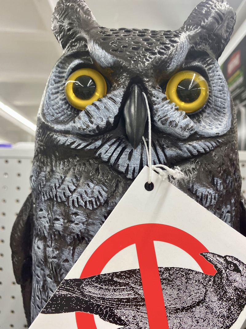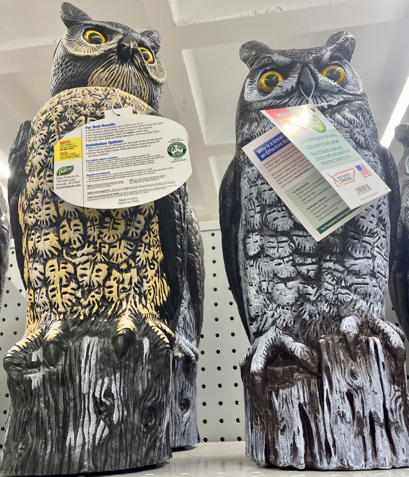 Our furry friends are also not fans of spicy food or owls. Sally suggests spicing things up with a hot seed blend like Coles Cajun Cardinal, and setting up an owl house/ statue.