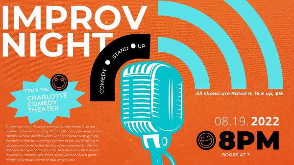 Laugh alongside friends and neighbors while a cast of highly-skilled improvisors from Charlotte Comedy Theater entertain and delight your funny bone. Shows are Rated R and tickets are $15. Doors open at 7:00p and the show begins at 8:00p.