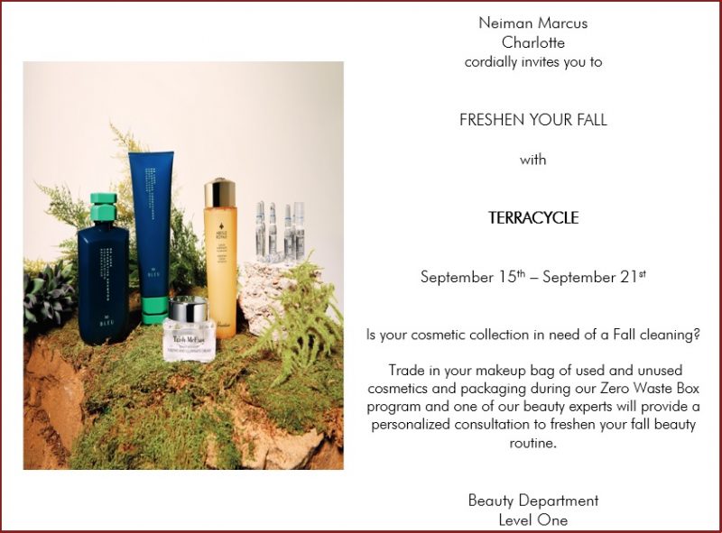 During their Beauty Event, from September 15th – September 21st you can bring in any used and unused beauty products and packaging and receive a personalized consultation with a beauty expert on how to refresh your fall look.