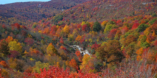At an elevation of 5,506 feet, Beech Mountain is the highest town in the eastern USA, making it an early location in the fall color season usually by the first week of October. Expect a variety of things to do and see, including hiking, shopping, dining and more. From here, Romantic Asheville recommends you head south to head to the Waterrock Knob and Black Balsam areas for great color views.