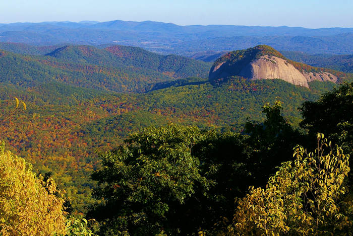 The Looking Glass Rock Trail, located off the Forest Heritage Scenic Byway, is an extremely popular and very walkable hike (from the Brevard area). The trail climbs about 1,700 ft. in just over three miles, but the views from the top are well worth it. Head down around the third week of October for ultimate fall color.