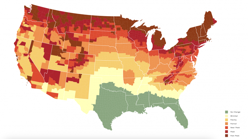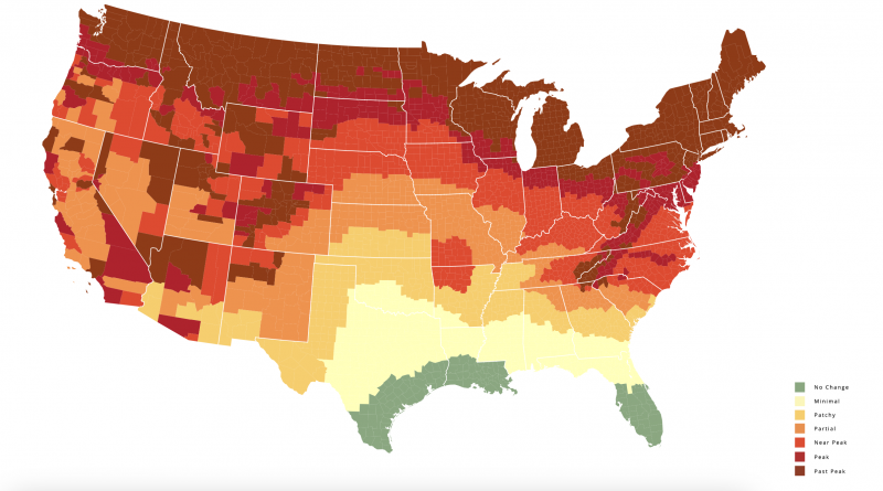 According to this year’s map, partial fall color could arrive to the NC/TN border the week of October 3.