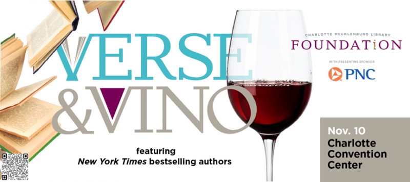 Verse & Vino is Charlotte Mecklenburg Library Foundation’s signature annual fundraiser. This celebration of reading, writing and the joy of libraries – shared with a community of readers and New York Times best-selling authors – has become one of our region’s most anticipated events.
