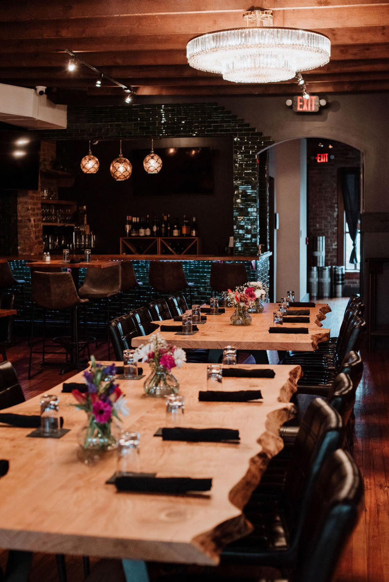 The Garrison is a two-story cocktail bar & restaurant located in historic downtown Pineville. As the town’s former bank, the charming space has character that dates back over 100 years. The Great Room at the Garrison is located on the second floor and can comfortably accommodate 60-70 guests seated and standing room 80 plus. With beautifully restored hardwoods, exposed brick, and its own craft cocktail bar, the Great Room is an amazing choice for your holiday party and beyond.