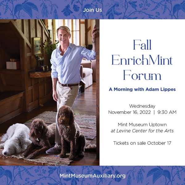This Fall Forum is part of the kick-off of the annual ROOM TO BLOOM presented by the Mint Auxiliary as a significant fundraiser for the Mint Museum. If you are a fan of art, fashion & design, consider a membership to the Mint Museum Auxiliary, or a sponsorship of the Room to Bloom.