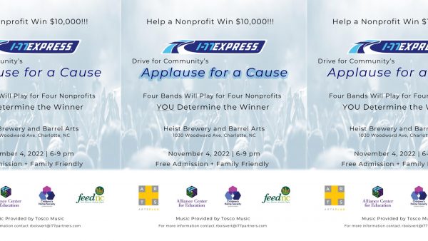 Be a part of help a local nonprofit win $10,000 during Applause for a Cause. Four bands will play, representing four deserving organizations and YOU determine the winner! The event is family-friend and free to attend.