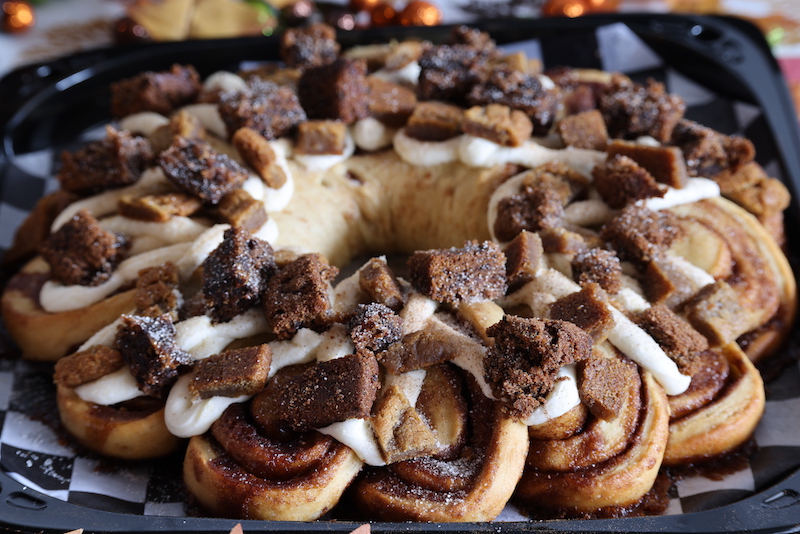 • Wreath Cakes: Signature cinnamon rolls folded into a wreath shape with your choice of frosting and up to three toppings. Serves 8-10 $34.99