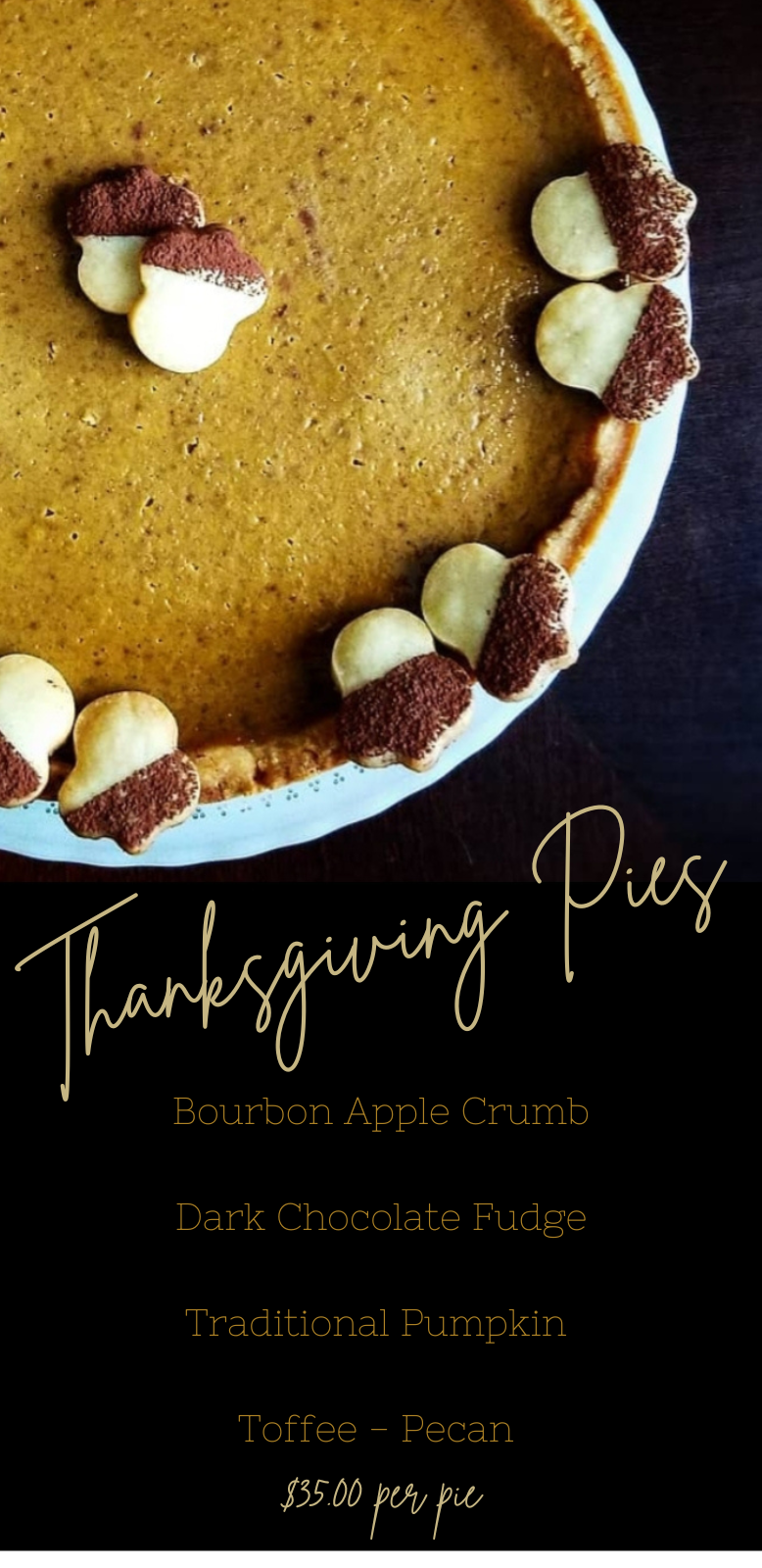 Email sam@wentworthandfenn.com for orders ready for pick up on 11/23 unless otherwise specified. $35 per pie for your choice of: