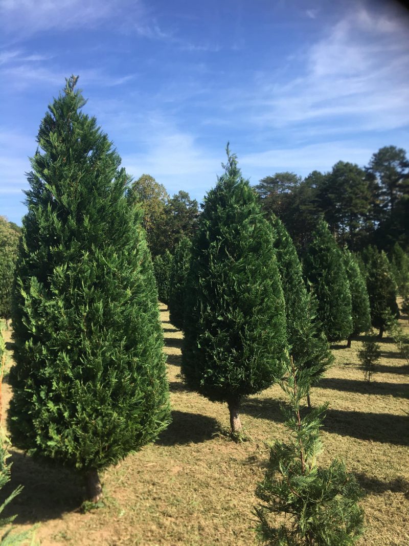 Penland Christmas Tree Farm has a variety of trees to choose and cut: Leyland cypress, Virginia Pine (Southern Scotch), White Pine, Carolina Sapphire, Christmas Mint Cypress, Red Cedar, Blue Ice, and Fraser Fir.