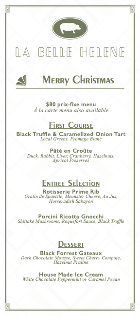 • Three Course Prix Fixe for $60 per person (only menu offered on Christmas Eve)