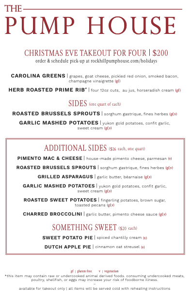 The Pump House Christmas Eve for Dine in & Take Out