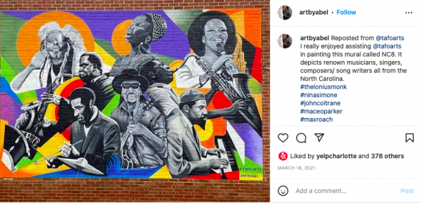Another great resource for finding murals around the city is the Talking Walls Mural Festival. While this year’s event was held in October, you can head to www.talkingwallscharlotte.com anytime to find new work and artists featured in this year’s and prior years’ Talking Walls celebration. Either way, get outside and enjoy murals all over the city for a change in scenery.