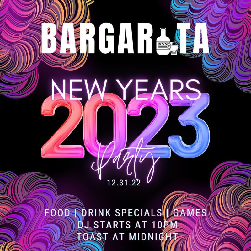 Say goodbye to 2022 at Bargarita, where there will be no cover charge and food and drink specials all night. DJ starts at 10 p.m. with a toast at midnight.